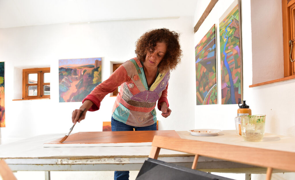 In ihren Malereien beschäftigt sich Schirin Fatemi mit dem Naturverhältnis des Menschen, dem Wandel von Landschaften und damit den Veränderungen der Wahrnehmung des Menschen. Fatemi, geboren in Würzburg, war nach ihrem Diplomabschluss an der Staatlichen Akademie der Bildenden Künste in Rom als freischaffende Szenenbildnerin tätig und wendete sich dann ganz der Freien Malerei und Grafik zu. Sie ist in zahlreichen Ausstellungen im In- und Ausland vertreten und wurde 2019 mit dem Andreas-Kunstpreis Natur-Mensch ausgezeichnet. Sie lebt und arbeitet heute in der Nähe von Hannover und in Rom.