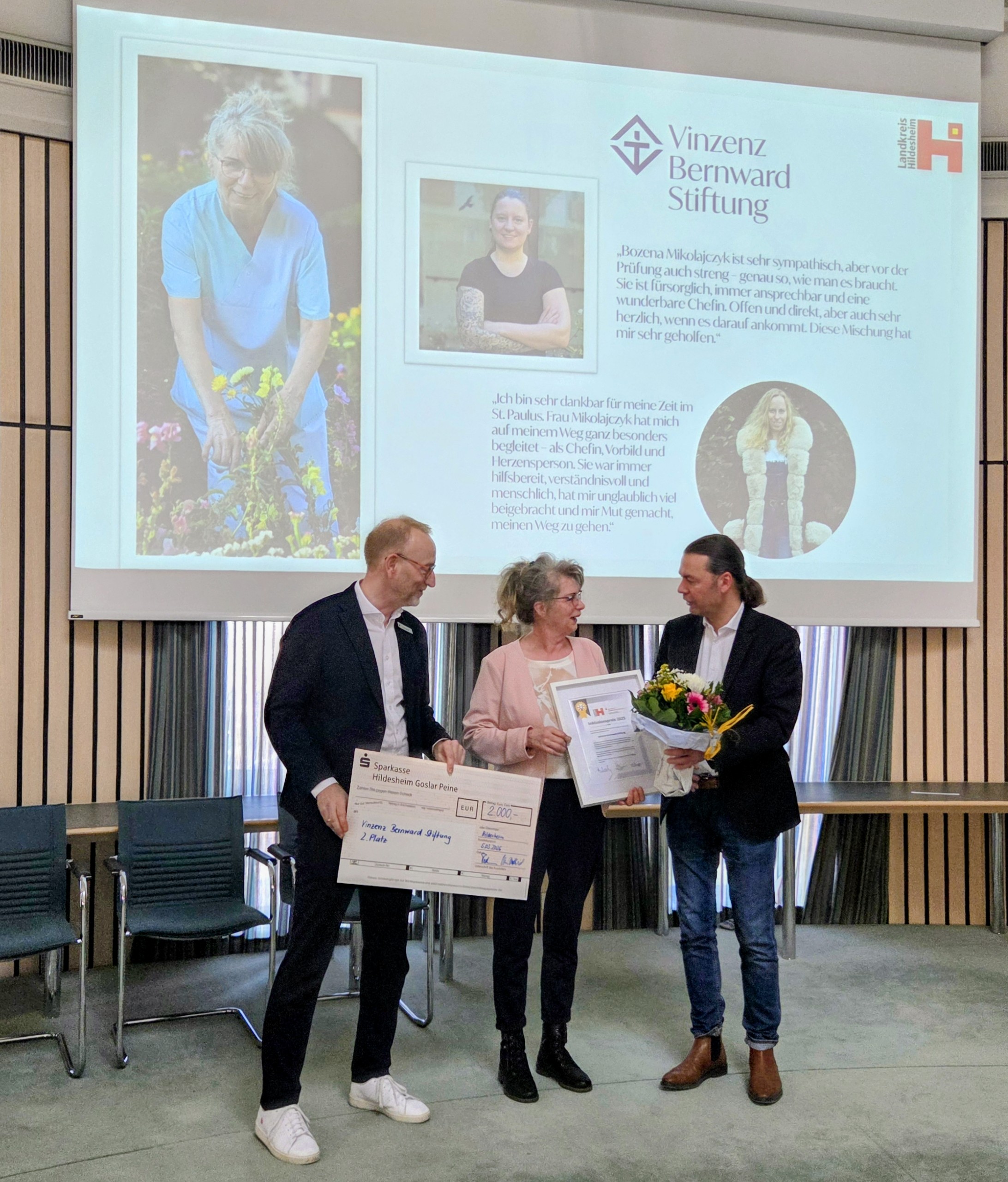 Eine besondere Auszeichnung für unser Altenpflegeheim St. Paulus: Bozena Mikolajczyk, unsere langjährige Hauswirtschaftsleitung, gehört zu den Preisträgerinnen des Inklusionspreises des Landkreises Hildesheim. Der Preis, der mit Unterstützung der Sparkasse Hildesheim Goslar Peine vergeben wird, würdigt in diesem Jahr Menschen und Projekte, die sich in besonderer Weise für Inklusion im Arbeitsleben engagieren.