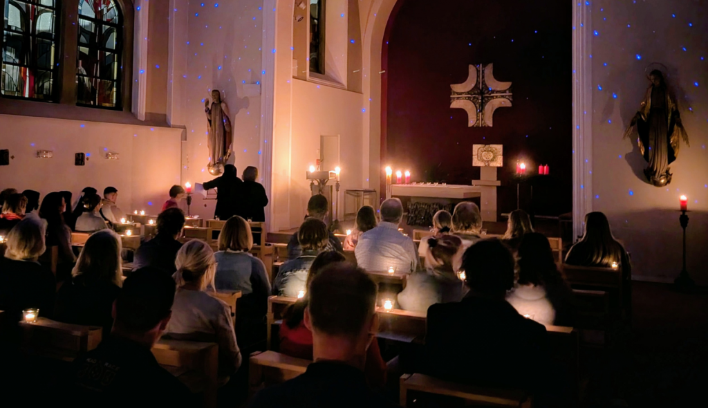Gemeinsam mit Schwestern und Mitarbeitenden aus Mutterhaus, Vinzenz Bernward Stiftung, ViSo, GSKB und St. Paulus erlebten wir eine berührende Einstimmung in den Advent. In der dunkel gewordenen Kapelle leuchtete nur die Osterkerze – bis nach und nach hunderte Teelichter entzündet wurden.