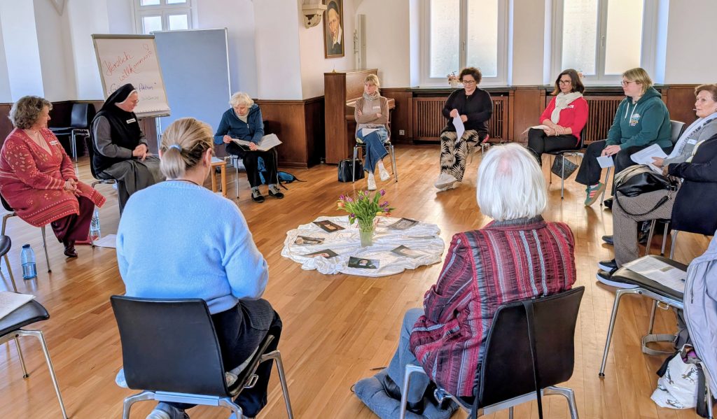 Der Tag begann mit einem spirituellen Einstieg: Schwester M. Hanna Schmaus stellte verschiedene Psalmen vor und lud die Teilnehmenden ein, ein Wort oder einen Vers auszuwählen, der sie persönlich anspricht. In der anschließenden Vorstellungsrunde teilten die Anwesenden ihre Gedanken und Erfahrungen. Diese erste Begegnung war geprägt von Offenheit, Tiefe, gefühlvollen und heiteren Momenten – berührend, lebendig und verbindend zugleich.