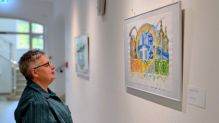 Aquarellmalerei mit Leuchtkraft im Mutterhaus: Vom 27. August 2025 bis zum 10. Januar 2026 zeigt die Künstlerin Elke von Boeselager im Mutterhaus eine Auswahl von 14 Aquarellen zum Heziloleuchter.